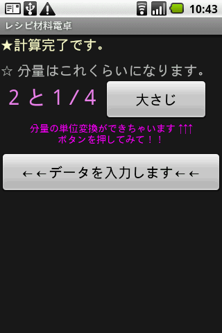 材料の分量を入力すれば、自分が作りたい人数分の分量を計算してくれます!