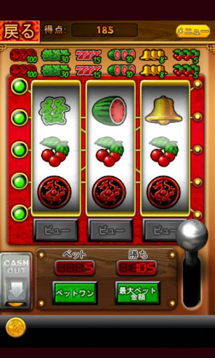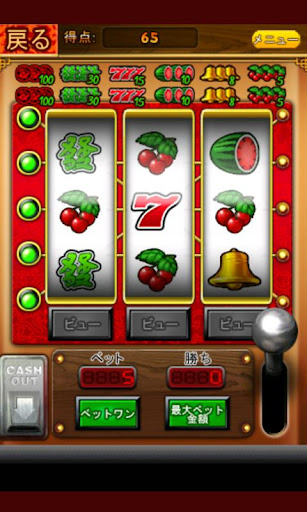 スロットマシンはロットを引っ張り、ボタンを同じ柄が揃うようにタイミングよく押して楽しむシンプルなゲームです。最高評価であるスリーセブンが揃うように挑戦しましょう。