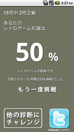 レトロゲーム診断クイズは、レトロゲームに関するの問題を詰め込んだレトロゲームへの知識を深める為のアプリの決定版です。診断結果はTwitterにつぶやくこともできますので、100点を目指してください。また、OpenFeintにも対応しています。