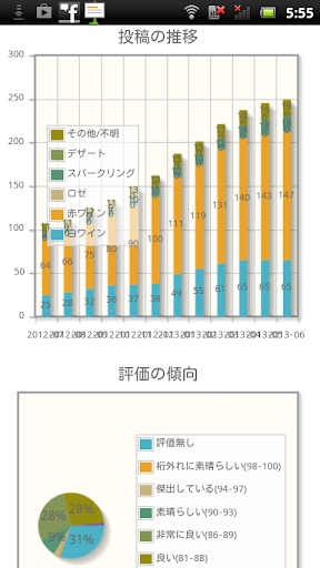 投稿されたワインのデータから自分のワイングラフが自動的に作成されます。自分が今まで飲んだワインの統計をグラフで表示することが可能です。他のユーザーのグラフを見ることもできるので、好みが近いユーザーを簡単に見つけることができます。