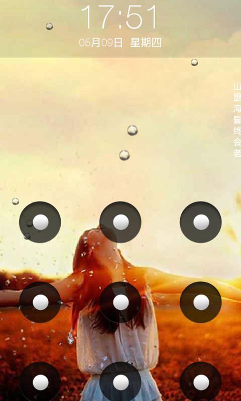 一款安全实用的锁屏软件,功能强大,界面美观,还可以diy设置锁屏背景。初次使用请点击记录解锁图案按钮,绘制新图案保存即可,在点击开启图案解锁按钮,按两下锁屏键,进入锁屏界面,只要绘制刚保存的图案即可成功解锁。赶快来试试吧!再也不用担心手机里的隐私信息被泄露了。