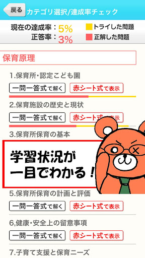 ・カテゴリー別に学習状況を一目で把握できます。