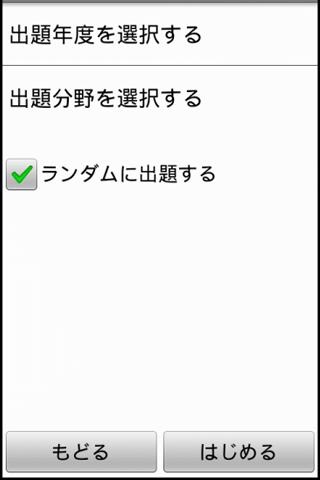 出題:年度別、カテゴリ別、ランダム出題、模擬試験出題、不正解問題のみ出題