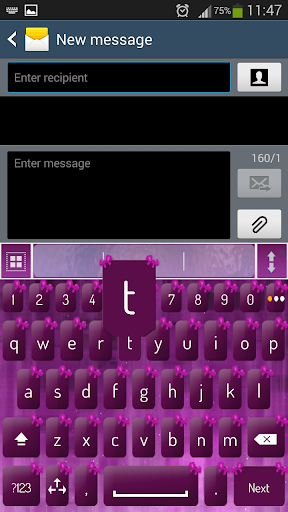 如果你迷恋的紫色,你认为它表达得非常好您的深奥和神秘的内在的自我,那么这个键盘的主题是您的最佳选择. 立即下载一个免费.我. 键入紫弓的主题,让所有小工具符合您的个性真棒. 让你的键盘中脱颖而出,激励和由mysteryous,强大和充满活力的紫色的启发. 是梦幻般的,并随时通过我们的新的和令人惊异的应用程序来表达自己. 今天下载紫蝴蝶键盘主题装点你的键盘.