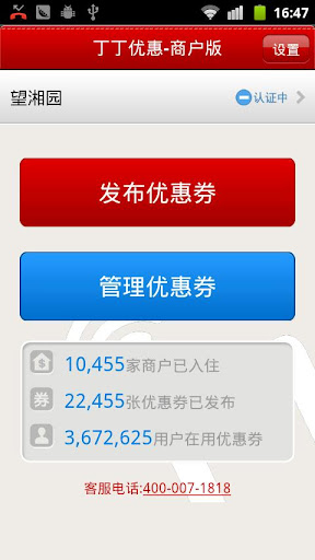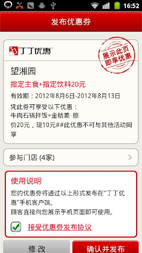 - 发布的商户信息及优惠券信息将展现在“丁丁优惠”的终端用户面前。