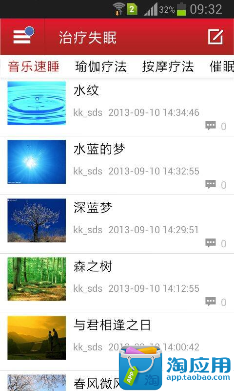 音乐治疗:客户端中的睡眠音乐通过转码,变成了8-9赫兹波段的音频,让失眠者通过听觉,自我调节脑波,快速进入7倍深度睡眠,失眠音乐也是时下流行的治疗失眠的手段;
