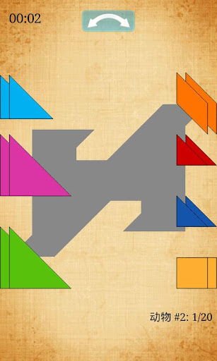 * 遊戲玩法很簡單:根據背景輪廓,把七彩板填滿其中,不能重疊,每個七彩板可以旋轉和翻轉。