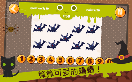 使用现代技术教孩子1和10之间的数字。我们有趣的万圣节游戏帮助你!这对幼儿的教育活动,特别创造对学龄前的孩子!有趣,丰富多彩的数学游戏会帮你教孩子基本的数字,并让他们练习有一些乐趣计数。