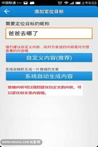 对方不需要安装任何软件就能定位! 采用全世界最先进的网络跟踪定位技术。 对方不管是什么手机还是平板还是电脑,只要对方设备能够上网就能定位。 本软件根据您的需要,可以自定义生成一个定位链接,定位链接被对方打开后,位置就可以直接反馈给您。 定位成功推送提醒功能,让您用的更加舒心。 谁用谁知道,这个您懂得! 软件永久免费提供,友情提示,他人位置是用户个人隐私,切不可以用于非法用途。 最后提醒,需要对方打开网站才能定位,好用的话,请给予好评鼓励吧,也不枉日日夜夜为大家全力打造最强的定位产品。 应用领域: 小孩监护、老人跟踪、老公去哪了、爸爸去哪了、定位追踪、定位找人、手机找回。