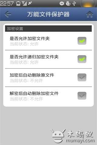 2、美化界面,修复用户反馈的bug用户使用手册 万能文件保护器是一款对任意文件进行加密解密的软件,它可以对文本,视频,图片,word文档等文件格式进行加密解密,确保用户的数据安 全。加密操作
