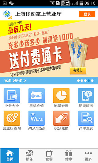 上海移动手机客户端是上海移动客户的自助服务软件,是您身边“7*24小时的移动营业厅”,可以随时满足您的移动业务查询和办理需求,独享的话费充值优惠,好玩有趣的有奖活动等您来参与!1、基本功能:话费查询、流量查询、资费查询、交费充值、积分查询兑换、业务办理及更换、历史账单等。2、其他功能:WLAN热点查询、归属地查询、营业厅查询、国际漫游资费、港澳台漫游资费、4G专区等。3、特色功能及活动:摇一摇、顶刮刮赢千元大奖活动、手机彩票等。更多精彩服务和活动期待您的体验!