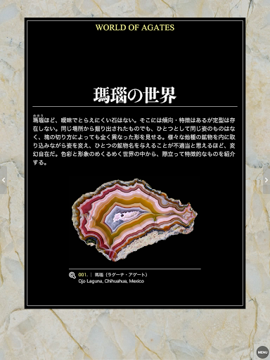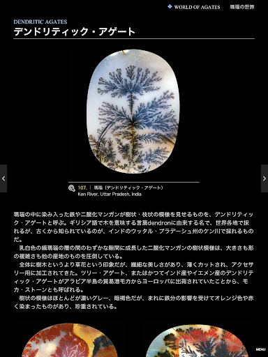 ・「石のショーケース」として、すべての石の画像をサムネイル形式で一覧することができます。