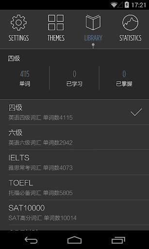 四六级、考研、托福、雅思、高中英语词汇、GMAT、MBA等等词库,涵盖了各类考试各种应用场景。
