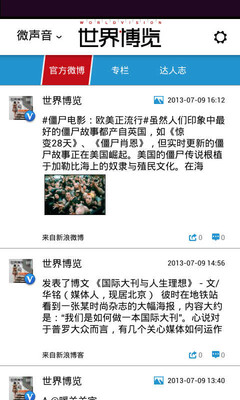 微声音:杂志的官方微博、达人志、作家专栏的全方位体现!让人随心所欲地了解任中外文化,最新资讯,一呼百应!