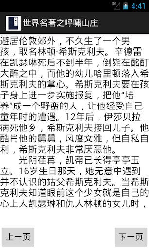 《呼啸山庄》是英国女作家勃朗特姐妹之一艾米莉·勃朗特的作品,是19世纪英国文学的代表作之一。小说描写吉卜赛弃儿希斯克利夫被山庄老主人收养后,因受辱和恋爱不遂,外出致富,回来后对与其女友凯瑟琳结婚的地主林顿及其子女进行报复的故事。全篇充满强烈的反压迫、争幸福的斗争精神,又始终笼罩着离奇、紧张的超现实气氛,惊悚恐怖之中感人至深,带有部分哥特文学的奇幻恐怖色彩。它开始曾被人看做是年青女作家脱离现实的天真幻想,但结合其所描写地区激烈的阶级斗争和英国的社会现象,它不久便被评论界高度肯定,并受到读者的热烈欢迎。根据这部小说改编的影视作品至今久演不衰。