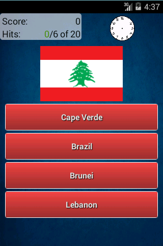 每一个时代都会随机变化的标志来猜,每场比赛包括20个问题,每次将提供一个国家的国旗在世界上的时间和4个可能的答案。你将不得不旗连接到正确的国家。