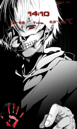 最新人气动漫,东京食尸鬼为主题的恐怖锁屏,胆小慎入。