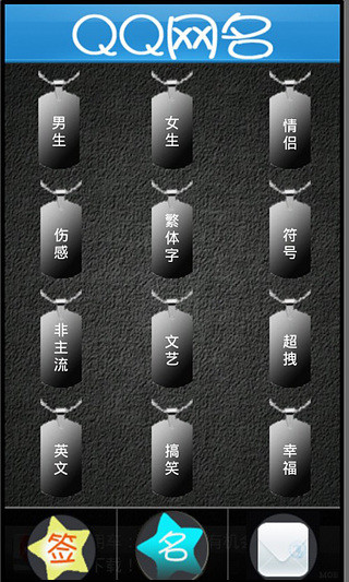 主要是为QQ用户提供大量的QQ个性网名,个性签名,个性分组等信息 此引用主要分为3个版面 1 ,签名版面 2,网名版面 3,详细页面