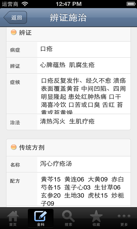 中医师、针灸推拿从业者、相关专业在校大学生、具有一定基础的中医爱好者可使用本系统全科含内、外、妇、儿、急症等数百个临床病种、数千个中药方剂、中成药处方和验方系统由主症入手,四诊合参,以人工智能的表达方式给出中医辨证结果和理法方药,提供传统方剂、现代中成药、针灸、指压、耳针、头针、水针、电针、刮痧等多种处方组合可灵活依据不同患者的症候及个体差异,自动进行处方加减;如果患者因症候冲突或缺少导致辨证参数不足,将提示重新进行选择;只有当症候组合满足必需的辨证条件后,才会给出辨证施治结果;否则,将不予辨证,以杜绝误诊和漏诊;提供智能搜索功能,普通用户既使输入非专业的术语和名词,也能找到相应的病症;云计算后台知识库及运营管理系统保证了医疗大数据的实时处理与分析