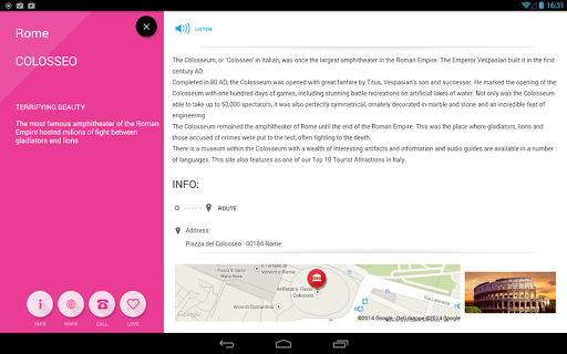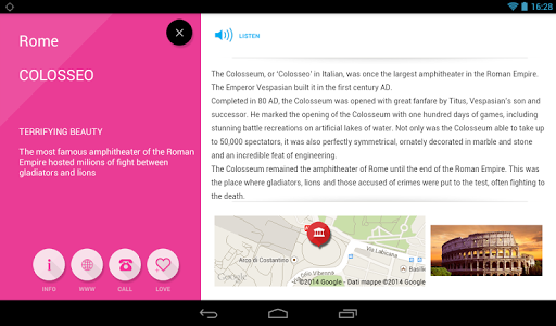 第一个针对想要更好的了解意大利的中国游客的旅行指南,不仅有英文、中文等文字译本,还有有声中文译本,它让游客的旅程充满艺术和文化气息,整个旅程更加轻松愉悦。