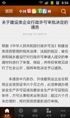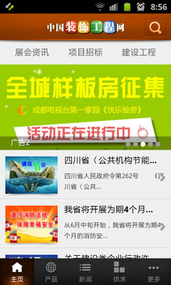 中国装饰工程网收集国内外装饰工程公司相关信息,为装饰工程行业以及消费者提供及时、有效、全面、精准的行业信息。中国装饰工程网为促进国内外装饰行业快速发展,扩大行业市场,提升行业品牌形象而建立的手机客户端。该客户端向广大客户展示了一个大型的装饰工程移动互联网上平台,以便捷的浏览方式、强大的应用功能,最新的资讯信息,为广大客户提供了一个丰富的装饰工程信息平台,时时刻刻的为您更新,让您爱不释手。