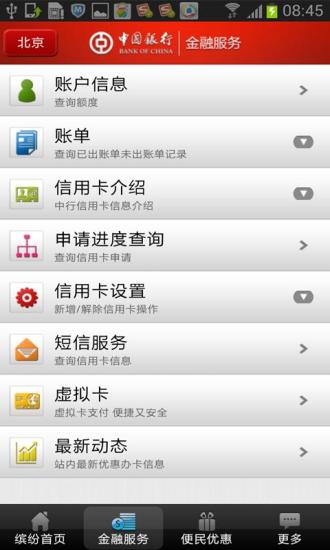 当您准备用餐时,正苦恼无法找到附近优惠商户准确定位时,当您担心本月账单是否已经超出预算,当您手机已经欠费,等等等... 中国银行缤纷生活能够为您解决以上所有问题
