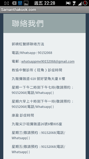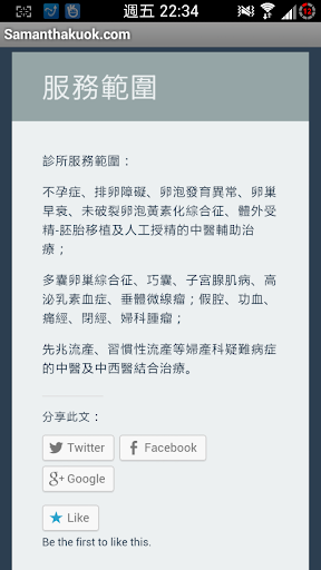 診所服務範圍:不孕症、排卵障礙、卵泡發育異常、卵巢早衰、未破裂卵泡黃素化綜合征、體外受精-胚胎移植及人工授精的中醫輔助治療;多囊卵巢綜合征、巧囊、子宮腺肌病、高泌乳素血症、垂體微線瘤;假腔、功血、痛經、閉經、婦科腫瘤;先兆流產、習慣性流產等婦產科疑難病症的中醫及中西醫結合治療。