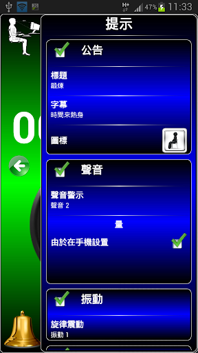 該計劃的目的是為人們久坐的工作。程序員和律師,撰稿人和自由職業者,司機和刺繡,會計師和網頁設計師,遊戲玩家和許多其他現代職業風險來獲得問題。通過配置您的喜好進行定時提醒,程序會提醒進行簡單的練習。