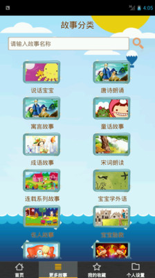 乖宝宝听故事,让宝宝更聪明,让妈妈更省心。包含儿歌、儿童睡前故事、儿童歌曲大全、童话连载系列故事胎教音乐,寓言故事,民间故事,唐诗,成语故事,三十六计,课文朗读,中国历史故事,,历史名人故事等。 宝宝故事精心挑选和制作出许多经典动听的故事,保持更新,让你不再为讲故事而烦恼。 爱听故事是宝宝的天性,美丽的童话故事可以陶冶孩子的情操,丰富孩子的经历!