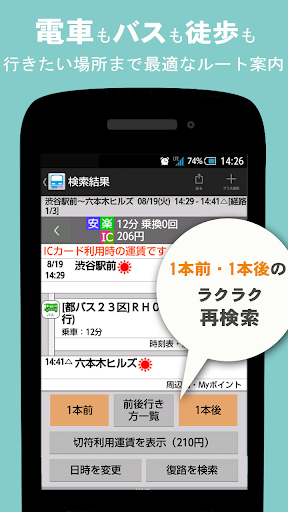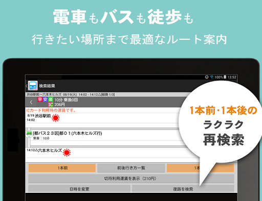 ・早く着きすぎると思ったら「1本前検索」、乗り遅れそうなら「1本後検索」、「前後の列車一覧」といった便利な再検索機能があなたの移動を効率的にします。