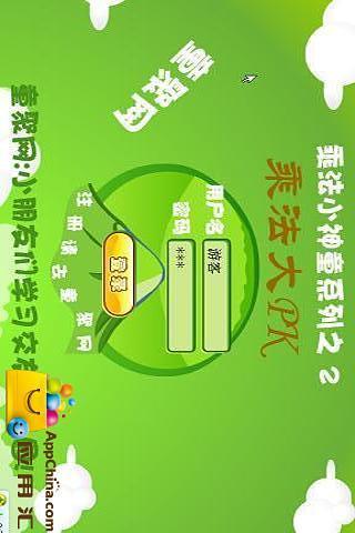 此应用让宝贝儿快乐的学习数学乘法。适合很小的宝宝练习乘法口诀. 玩法是:进入游戏,首先选择要挑战的好友,然后开始游戏。宝贝儿将看到屏幕中央显示出一个乘法算式,下方是答案,选择正确的答案后将加分。 此应用会保存宝贝的游戏的得分, 宝贝儿可以和同学好友一比高下哦! 需要说明的是:此应用的运行需要adobe air应用的支持,请在运行前下载安装adobe air应用的最新版本.