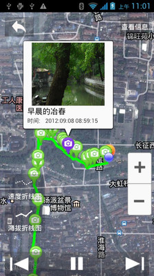 软件开启后,您可以随时记录当前的轨迹,并可以在当前轨迹上进行拍照和路点,同时软件将会自动将您的拍照和路点信息标注在轨迹上,方便您日后查看。记录自己每天的生活足迹就从九九旅程开始。