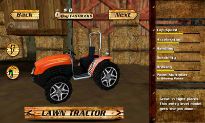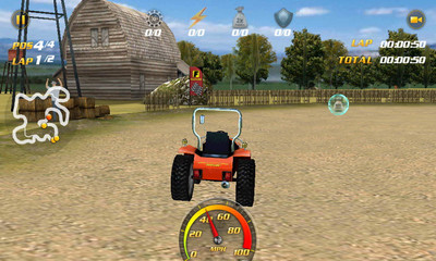 这是一款拖拉机竞速游戏,玩过了跑车、大卡车、卡丁车,你是否都已经厌倦了?还没玩过拖拉机吧?而且还是美式拖拉机,有兴趣可以来试一下!该游戏利用重力感应进行操作,控制拖拉机的行驶方向,并且触摸屏幕进行加速控制,游戏玩法还是很简单易操作的。