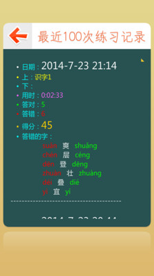 小学二年级语文上册生字拼音练习课件-人教版(人民教育出版社出版)(课本生字表1、2 的800个会认会读的生字拼音练习)与课文同步;练习模式具有生字组词、成语提示,正确拼音提示,自动保存每次练习成绩和答错的生字与拼音,用于纠正错误、监督学习;学习模式可以用“拼音+生字+组词”的智能随机方式加深记忆;可以对答错的字进行集中学习与练习。