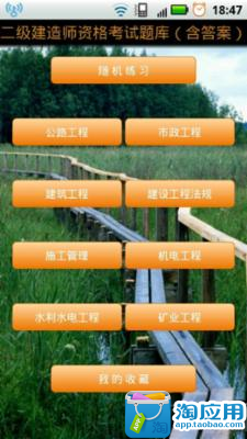 1、软件搜集了大量二级建造师资格考试试题,包括公路工程、市政工程、建筑工程、建设工程法规、施工管理、机电工程、水利水电工程、矿业工程等科目。