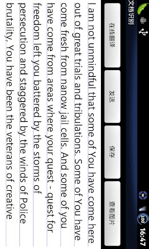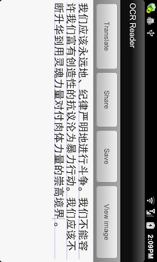 * 直接将识别出的文字和图像发送至新浪微博(如果手机安装人人网或其他社交网络的客户端,还可以将识别结果分享至相应的网站)