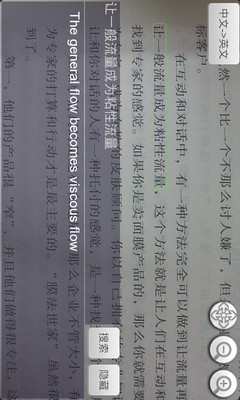 利用手机直接拍摄或导入已有文档图像的方式,自动识别图像上的文字信息,并可即时在线翻译,或通过电邮、短信等方式分享给好友。