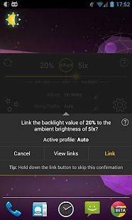 亮度自动调节(Lux Auto Brightness)是一款用户可以自由定制光感感应之后的屏幕亮度调节,比系统自带的光感的灵活性更高,范围也更广。