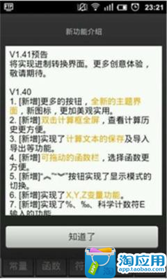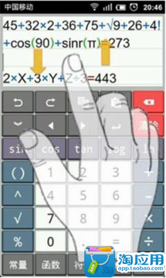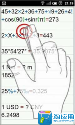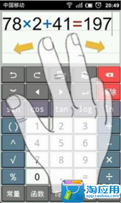 人工智能计算器是目前android平台上设计最为人性化的智能计算器,最大的特点就是非常适合触摸屏计算,它集单点和多点触控、真人语音、表达式计算、单位转换、汇率换算等众多功能为一体,追求用最简单的操作实现最强大的功能。