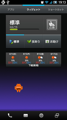 機種や場所によってはGPSがうまく動作しない場合もありますのでその場合は端末を再起動したりウィジェットを出しなおしたりしてみてください。