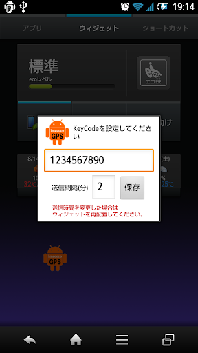 キーコードと送信間隔の設定はウィジェットを最初に表示した時にダイアログが表示されるのでお好きな数字を設定してください。(4桁以上推奨)