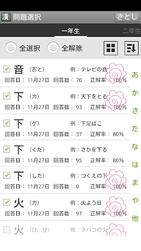 また、広い範囲で設定した場合でも、問題は、正解率の低い漢字が優先的に出題されるため、苦手な漢字が埋もれることはありません。