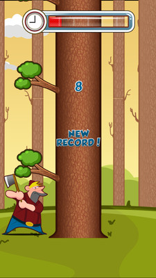 好玩到爆的虐心小游戏来袭了。你是一名疯狂的伐木工,疯狂地砍伐一颗永远也看不完的大树,根本停不下来。要注意不要被降下来的树枝砸中脑袋,左边有树枝就跑到右边砍,除此之外,你还得和时间赛跑,砍得越快时间过得越慢哦。