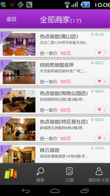 使您足不出户,即可非常方便的查询运动场馆、美容店和瑜伽馆的地理位置、联系电话、场馆设施、真实照片以及不同时段的价格等信息,
