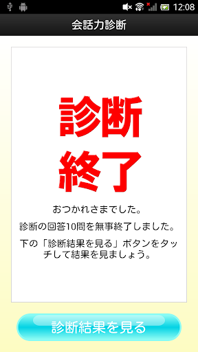 ★診断終了!一定数問題を解答したら結果画面へ。ここであなたの正解率を判定します。