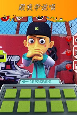 说唱回应触屏和重复他听到的话,另外你还可以做这么多的事:玩 beatbox (节奏口技)– 有大量的节奏和音响,搓碟,街头涂鸦,把它寄给朋友,录像,把它上载到YouTube, Facebook, 或通过电子邮件寄给其他人!