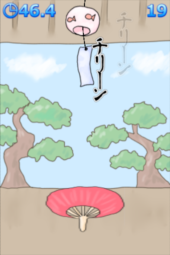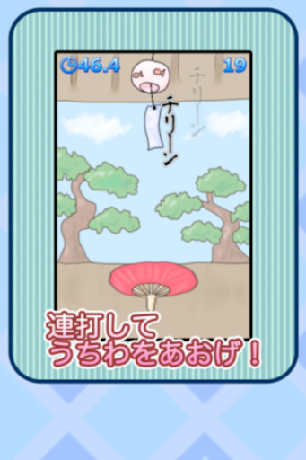 画面をタップすると団扇をあおいで、風鈴が鳴ります。