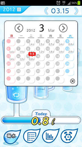 ✔ 在画面上出现的图表UI中可简单的输入目前饮水的量。