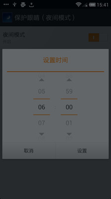 你也可以设定开启/关闭夜间模式的时间,一旦设置完成,达到设定时间时,夜间模式将自动的打开/关闭。免去手动开启/关闭夜间模式的烦恼。
