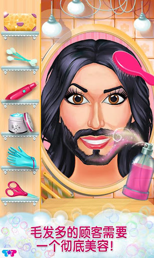 准备好做终极毛发修剪美容吧!摆个造型、拍张自拍照,然后开始在这个美容沙龙修剪你的面部毛发!为你自己或选择两位毛发特别多、特别杂乱的顾客做个彻底美容吧!从拔眉毛到修剪发型,这里有很多好玩的呢!使用专用美容工具来挤粉刺和除赘疣。制作清新的修脸润肤露,用各种各样的配饰来设计你的发型!你甚至可以除去你杂乱头发上的虱子!呃,好恶心!